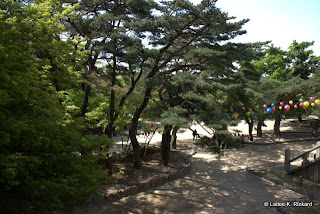 We weren't allowed to climb the major stairs, thank you very much, and took a small hill and staircase to the upper pavilion. This is view outside the courtyard walls.