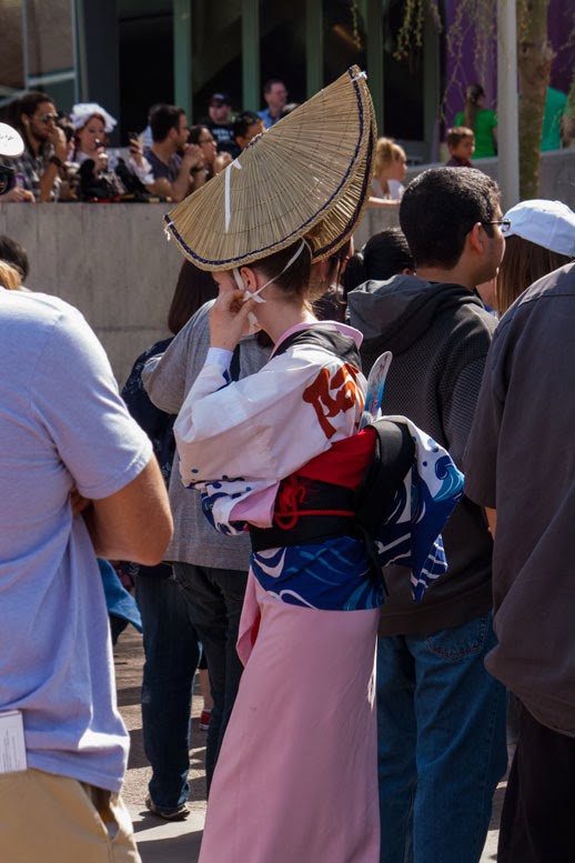 This guy looked like he might be a performer. I got caught snapping his photo. Maybe he isn't a performer...very cute and so serious. Muscular forearms. Perhaps he is a taiko drummer?
